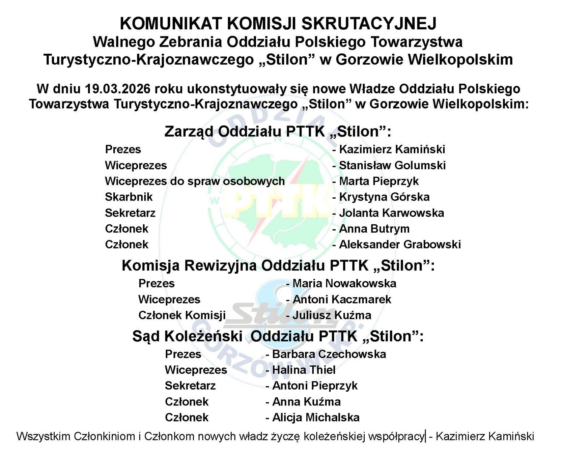 "Oddział Polskiego Towarzystwa Turystyczno-Krajoznawczego Stilon w Gorzowie Wlkp." uchwalony został na Zjeździe Oddziału w dniu 7 września 2022 roku.