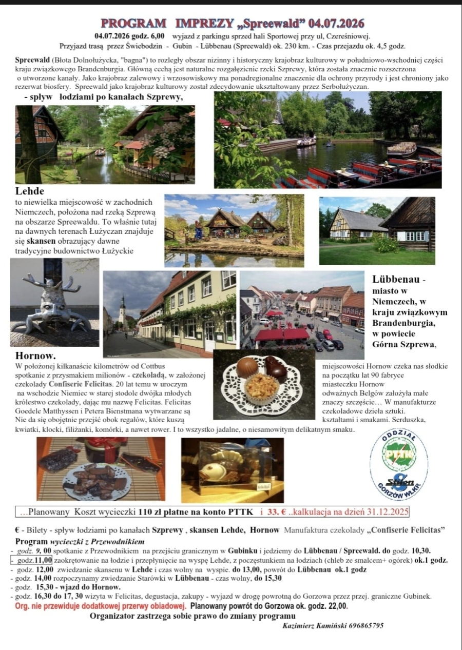 Szczegółowy plan Rajdu powstanie po uzgodnieniu z przewodnikiem.